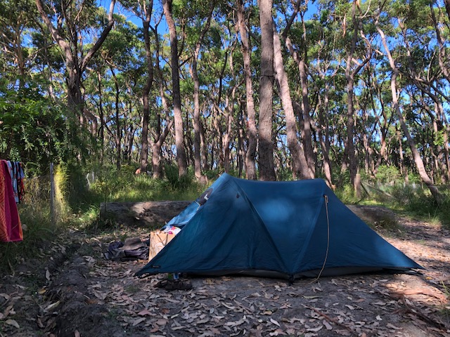 Back in Sydney, I mused about the next leg – north? south? I decided on Meroo National Park, just south of Ulladulla – a lovely spot with bush camping. Only 3 nights, but oodles of time to walk, swim, read and snooze. Calm mornings but windy in the day – perfect for afternoon napping! Watching a large goanna slowly meander down the steps onto an otherwise deserted beach; seeing country recovering after the fires. Peaceful and restorative, although by day 4 I felt ready for company again.